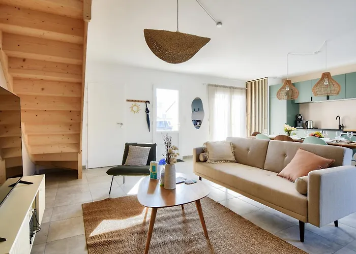 Cet établissement Belle maison pour 8 - 350m de la plage - Terrasse propose une cuisine équipée avec une bouilloire électrique, un réfrigérateur et de la vaisselle. Les clients peuvent dîner à L'Entre 2 Cotes, situé à moins de 300 mètres. Belle maison pour 8 - 350m de la plage - Terrasse est également non loin de l'arrêt de bus La Gueriniere - Rond-Point de l'Europe.